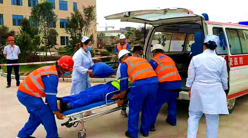 上午9:30分,隨著現(xiàn)場指揮宣布演練開始,相關(guān)人員進入工作狀態(tài)。9;35接現(xiàn)場人員報告,廠前區(qū)辦公樓地工地發(fā)生物體打擊事故,有1人受傷,現(xiàn)場總指揮立即宣布立即啟動應(yīng)急預(yù)案,應(yīng)急救援組、現(xiàn)場保衛(wèi)組、生產(chǎn)恢復(fù)組、后勤保障組立即趕赴現(xiàn)場,做好保護工作,應(yīng)急救援人員簡單對傷者進行了傷口處置,對傷害部位進行了固定,同時對傷害程度進行評估,并向總指揮匯報,應(yīng)急小組撥打120電話,急救中心派出救護車救援,保衛(wèi)組立即封閉事故現(xiàn)場,確定救援路線清理道路,監(jiān)護傷者等待救援。120救護車9:45到到達現(xiàn)場進行緊急處置后去醫(yī)院進行救治,總指揮隨即宣布應(yīng)急演練結(jié)束。