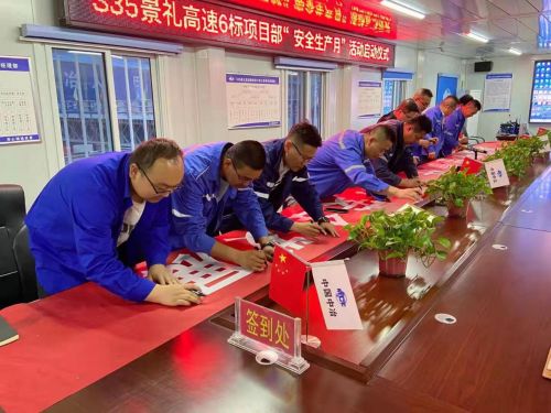 啟動儀式上,景禮項目部組織全體與會人員觀看了全國第20個“安全生產月”啟動儀式及警示教育片。項目部領導班子帶頭在“落實安全責任 推動安全發展”條幅上簽名承諾。