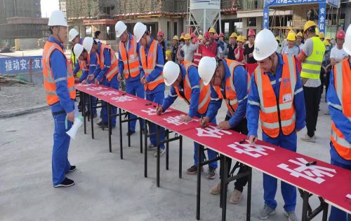 最后,所有人員在施工現場南大門處集合進行簽字儀式,簽字結束后,該項目經理正式宣布l項目“安全生產月”活動正式啟動。