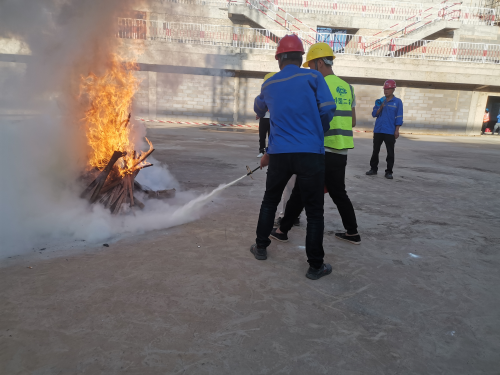 在活動現場,項目部安全管理人員詳細講解了火災發生時的逃生方式及應對措施,現場展示了滅火器等消防用具的使用方法,并提醒大家在火災發生時,要及時選擇正確的逃生方式,在保全自己的同時幫助他人。為提升職工應對火災的反應能力,安全管理人員現場指導大家進行了消防演練。