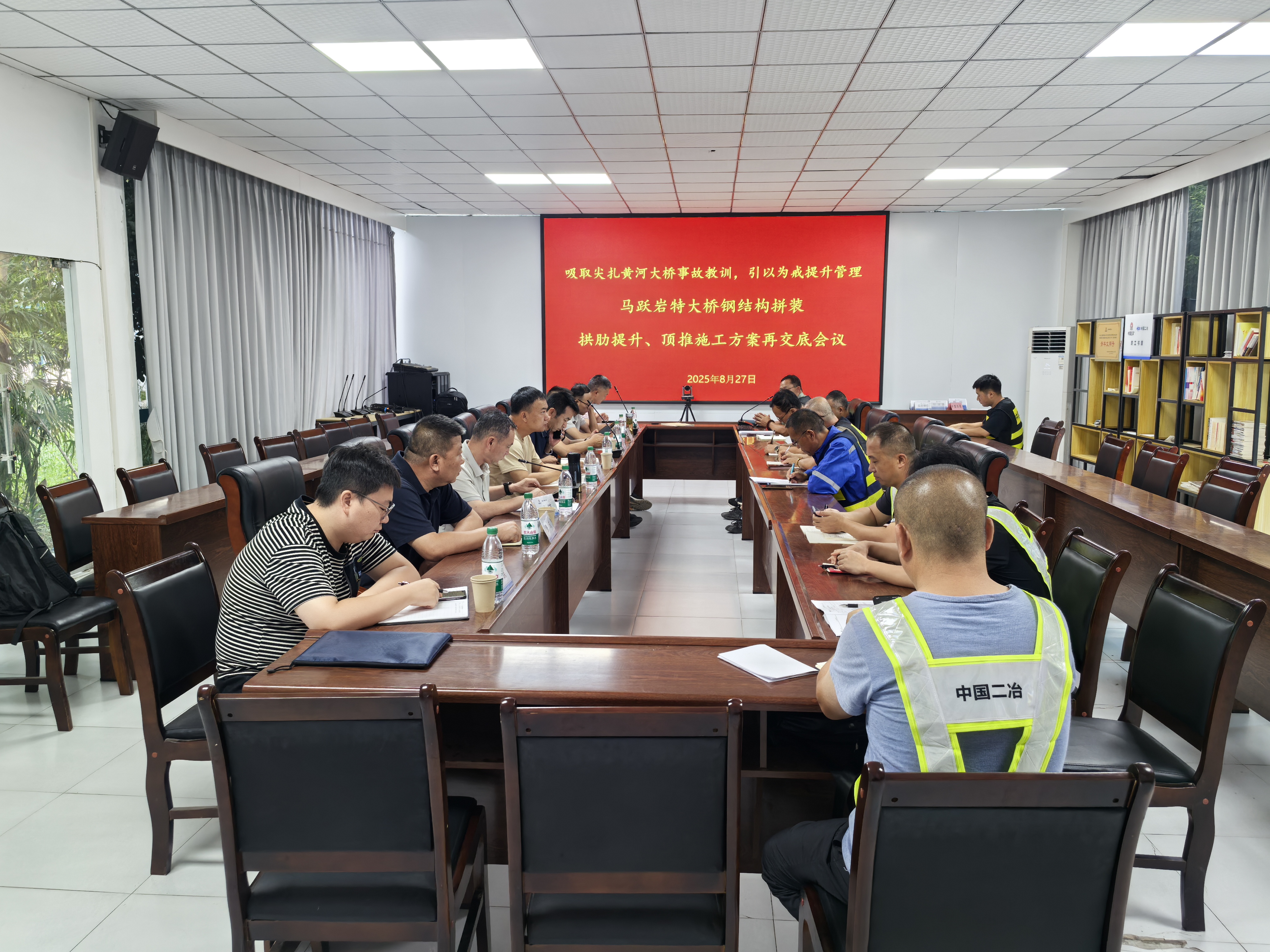 為進(jìn)一步貫徹工程項(xiàng)目全生命周期管理理念,提高施工安全與工程質(zhì)量。8月27日,四川分公司在三臺(tái)縣繞城改線項(xiàng)目組織召開了吸取尖扎黃河大橋事故教訓(xùn),引以為戒提升管理馬躍巖特大橋鋼結(jié)構(gòu)拼裝、拱肋提升、頂推施工方案再交底會(huì)議。會(huì)議由四川分公司總工程師主持,中國(guó)二冶安全生產(chǎn)監(jiān)督管理部、質(zhì)量環(huán)保部及項(xiàng)目管理部聯(lián)合組成的指導(dǎo)組對(duì)本次交底會(huì)議提出了具體要求。