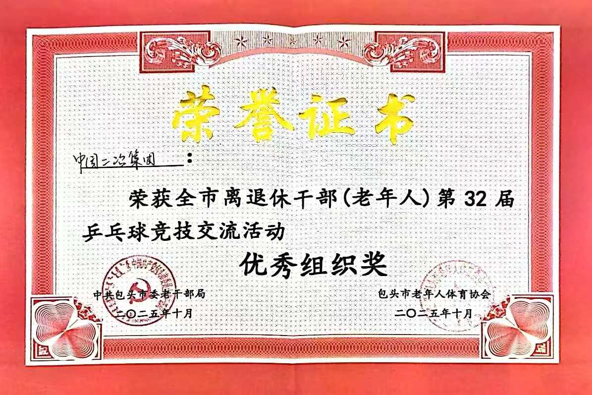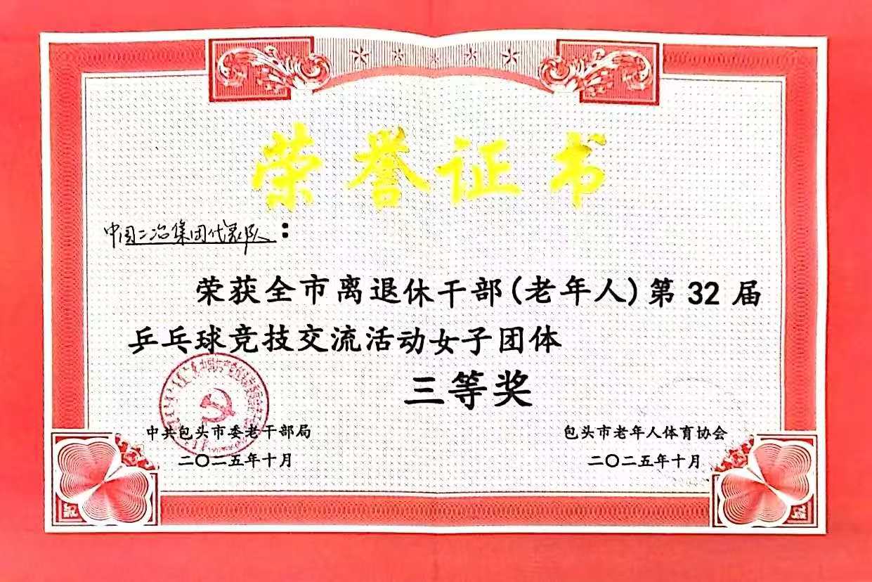 近日,由包頭市委老干部局、市老年人體育協(xié)會主辦,市老干部活動服務(wù)中心承辦的全市離退休干部(老年人)第32屆乒乓球競技交流活動圓滿結(jié)束,中國二冶在此次活動中成功斬獲優(yōu)秀組織獎與女子團體三等獎兩項榮譽。