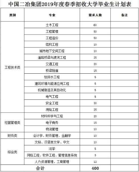 公司計(jì)劃2019年春季招收應(yīng)屆畢業(yè)生共計(jì)400人(詳見(jiàn)附件1)。