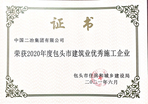 6月29日,包頭市住房和城鄉(xiāng)建設局(包住建建【2021】7號)公布了全市28家建筑業(yè)優(yōu)秀施工企業(yè)、66名優(yōu)秀建造師名單。中國二冶被授予“2020年度包頭市建筑業(yè)優(yōu)秀施工企業(yè)”榮譽稱號;甘肅分公司項目經(jīng)理張磊、鋼結構分公司項目經(jīng)理田忠剛榮獲“2020年度包頭市優(yōu)秀建造師”榮譽稱號。