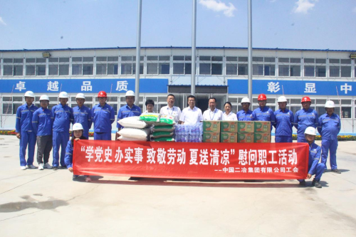 炎炎烈日送清涼,關(guān)愛員工暖人心。7月13日,中國二冶啟動(dòng)“致敬勞動(dòng) 夏送清涼”慰問職工活動(dòng),公司黨委書記、董事長徐永鋒,總經(jīng)理、黨委副書記高文華等領(lǐng)導(dǎo)紛紛來到施工現(xiàn)場(chǎng),將綠豆、白糖等防暑慰問品送到一線員工手中,為他們送去了親切問候和濃濃關(guān)懷。