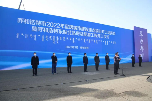 3月26日,呼和浩特市2022年宜居城市建設重點項目開工動員會暨呼和浩特東站北站房及配套工程開工儀式在中國二冶呼和浩特東站北廣場項目施工現場隆重舉行。內蒙古自治區黨委常委、呼和浩特市委書記包鋼宣布集中開工,呼和浩特市委副書記、市長賀海東致辭。
