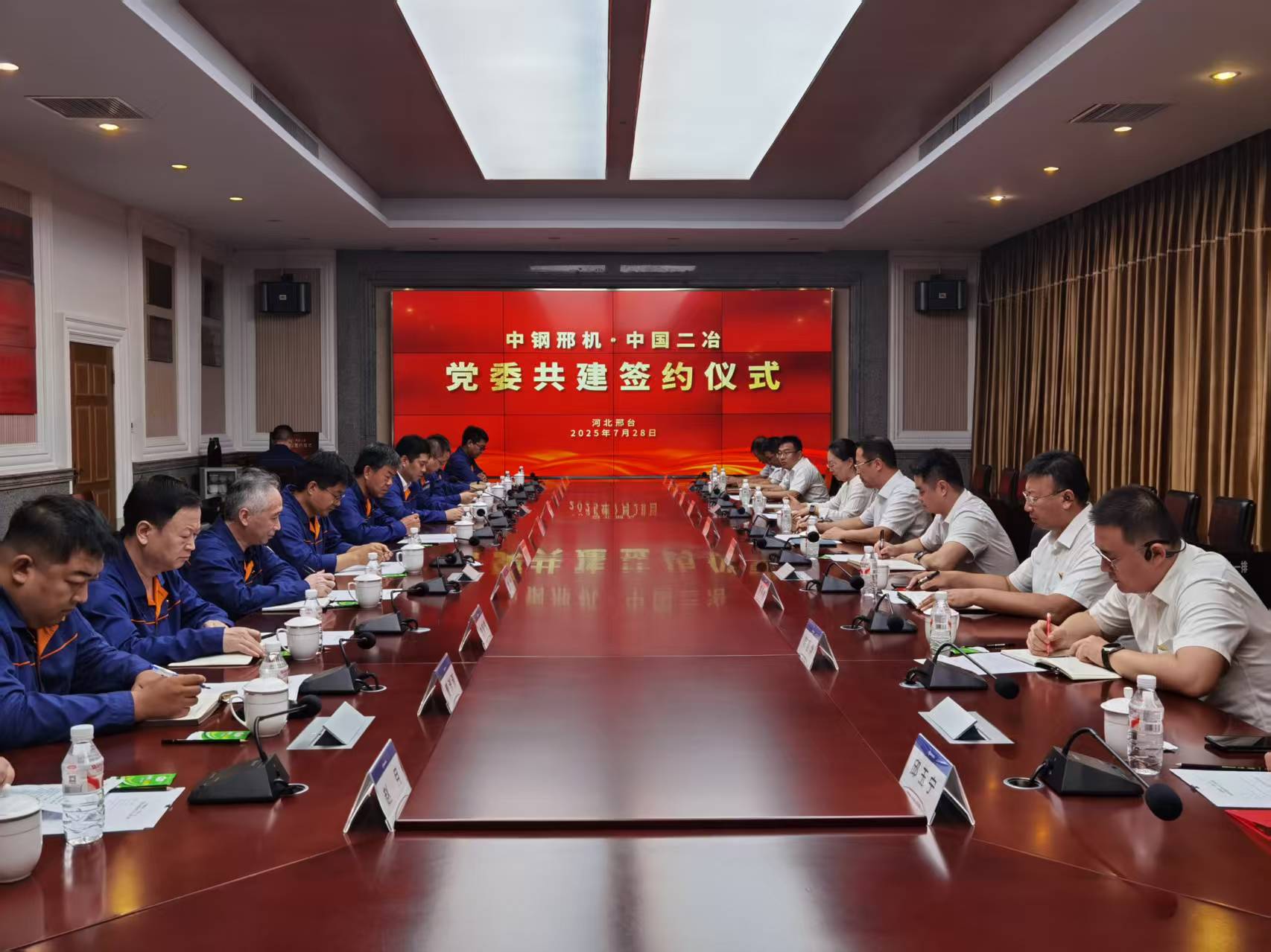 為充分發揮黨建引領作用,深化國有企業黨建與生產經營融合互促,7月28日,中國二冶黨委與中鋼邢機黨委在河北邢臺舉行黨建聯建共建簽約儀式。寶武重工(中鋼裝備)副總經理,中鋼邢機黨委委員、工會主席、總法律顧問、董事王瑞;寶武智維、寶武重工紀委副書記、紀檢監督部部長,中鋼邢機黨委副書記、紀委書記林毅;中國二冶黨委副書記、工會主席李海;雙方企業相關業務部門負責同志共同參加簽約儀式。