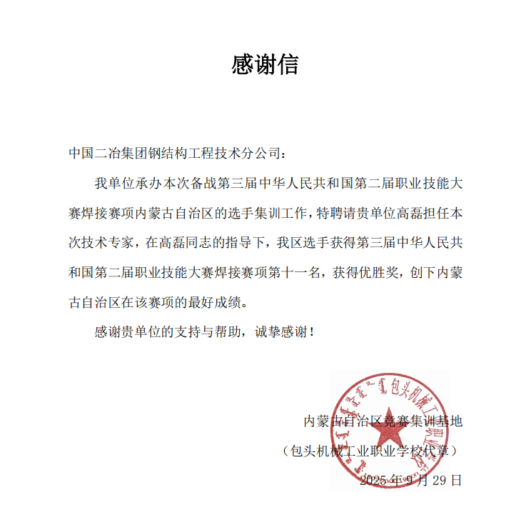 經(jīng)過系統(tǒng)指導(dǎo)與刻苦訓(xùn)練,高磊帶領(lǐng)的參賽選手在全國(guó)百余支隊(duì)伍的激烈角逐中脫穎而出,最終榮獲大賽焊接賽項(xiàng)第十一名,獲得優(yōu)勝獎(jiǎng),創(chuàng)下內(nèi)蒙古自治區(qū)在該賽項(xiàng)的最好成績(jī)。